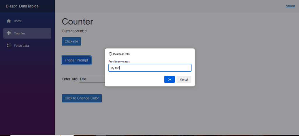 <button class="btn btn-primary" @onclick="TriggerPrompt">Trigger Prompt</button>